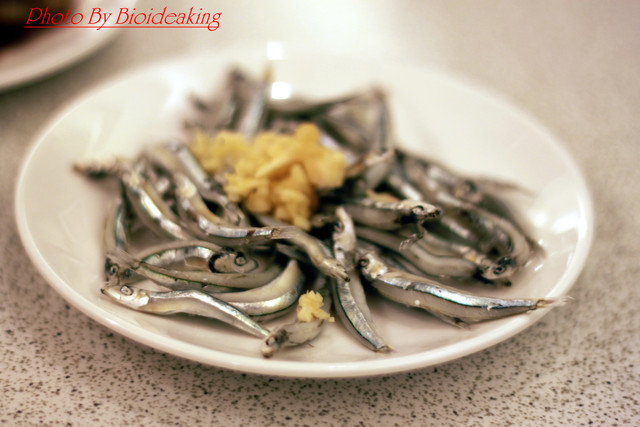 店家提供的良伴丁香魚,清燙過後,加點蒜蓉,吃得出丁香魚的清甜