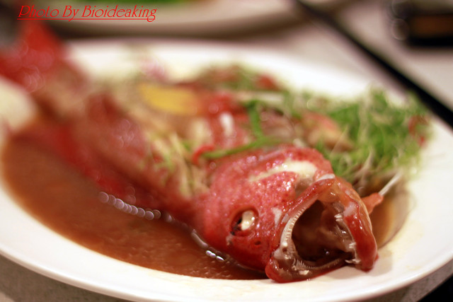 清蒸魚,大量的蔥絲,淋上一些醬油,肉質還不差,尤其是臉頰肉