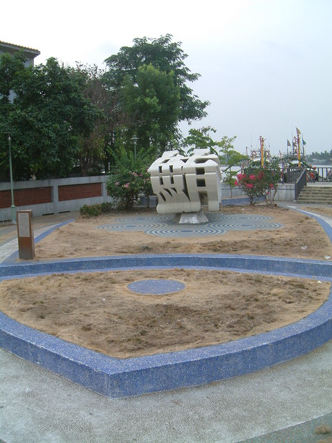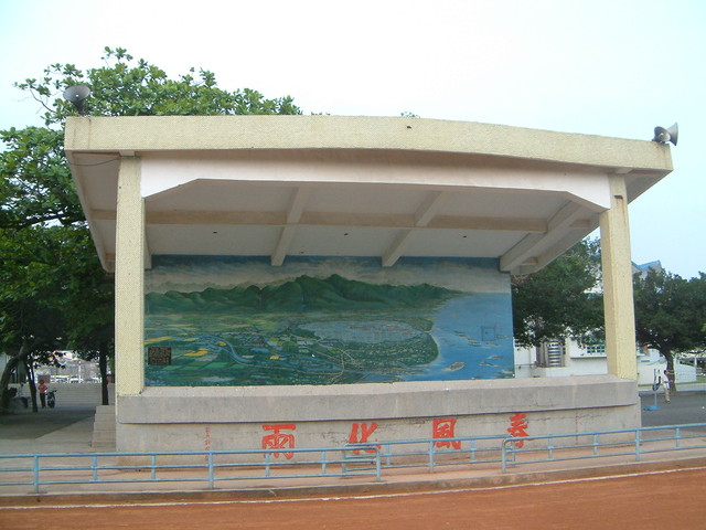 這是東港海濱國小的升旗台 以前是東港神社的遺跡