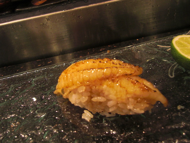我想到吉醫師在野壽司的裕二師傅拿起海螺貝