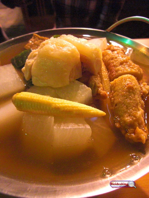 這一次點的東西,烤物基本上都是在中上水準,除了那個季節限定的羊筋,吃起來就是橡皮筋之外不推之外,大推他的黑輪火鍋。