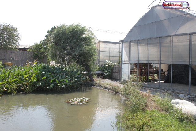而溫室外面,有一個水池,讓整個溫室看起來比較具規模