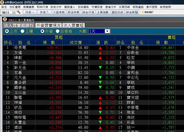 當然對於小額投資人的我而言,最重要就是看看法人、外資的買賣超,看看哪一些股票是最近比較多外資在購買的,可以當成操作的選擇,以免人家已經在脫手股票你還在狂買,沒有掌握到及時訊息,就少了一些獲利的機會!
