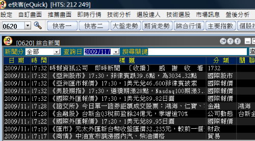 最近加入台灣工銀證券的「e快客」服務,在資訊的取得比較快速,自動會讓我取得最新的財經訊息,免去了一天看四大報紙網路版的時間,可在第一時間看到證交所的最新消息,比起網路的新聞討論區更新速度還要快,不會miss掉任何一則新聞!