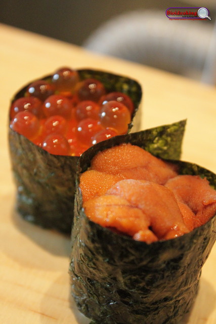 鮭魚卵(筋子)軍卷壽司+海膽軍艦卷壽司