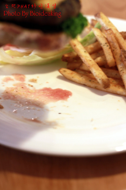 將漢堡拿起來之後,輕咬一口之後,就可以看到留在盤中的肉汁,真是令人難忘