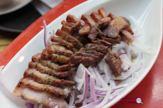 老闆招待鹹豬肉,沾點胡椒,就是白肉多了點,偏鹹了一點,要是能配上一碗白飯會更好。