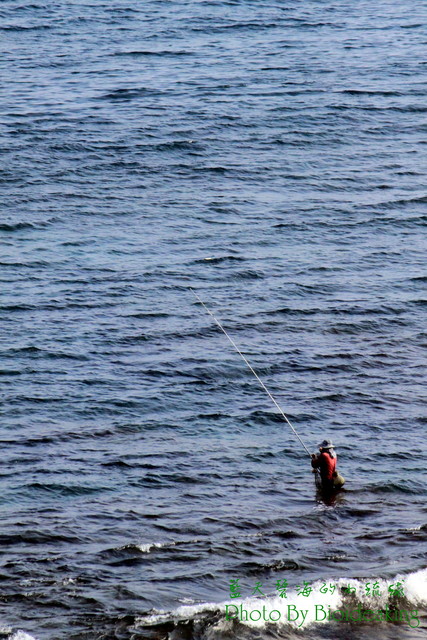 孤獨的釣客,站在大海中,卻另有一番滋味,而有經驗的釣客戴起了公娼帽,穿起長袖,就是示範正確的防曬裝備